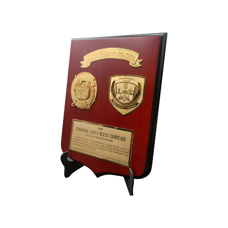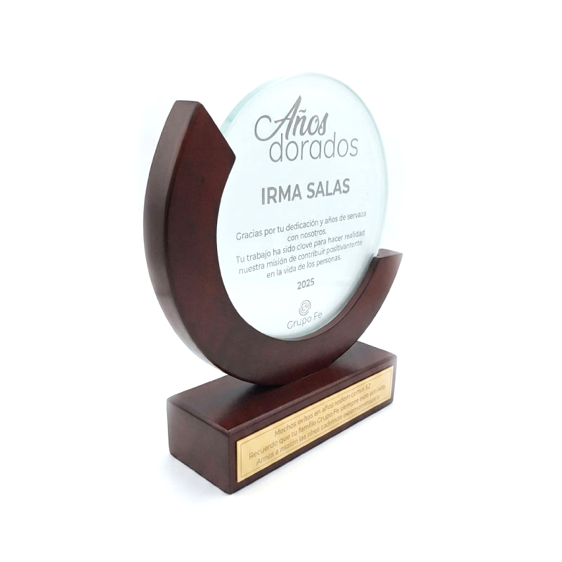 Este distintivo trofeo de madera encarna la solidez y nobleza de los logros celebrados, transformando la madera en una obra maestra que resalta la importancia de momentos extraordinarios.